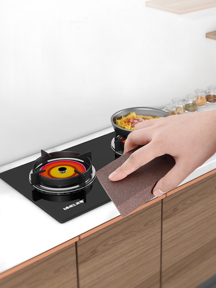金剛砂納米海綿的外層是金剛砂層,金剛砂是一種常見的研磨材料,硬度很大,僅次于金剛石,將金剛砂顆粒粉碎磨細,包裹在海綿外,特制的微小磨砂粒子專攻鍋外側(cè)的燒焦痕跡,鐵銹,砧板,烤箱,天然氣灶臺等頑固污漬,細砂質(zhì)感細膩,清潔力強,海綿可以吸附水和清潔劑,材質(zhì)柔軟不傷手,也不會對鍋造成損傷。(相關(guān)閱讀:金剛砂納米海綿)